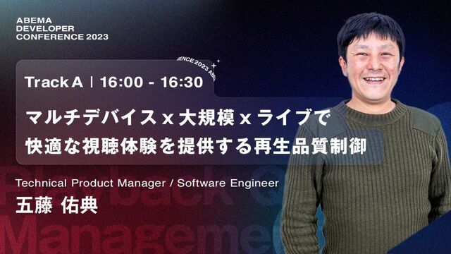 FIFA ワールドカップ カタール 2022 では、ABEMA でこれまで未踏であった規模のトラフィック、高い映像品質、厳しいセキュリティ条件での配信など多くの挑戦がありました。その挑戦は闇雲に実施したわけではなく、再生品質指標をデータとして慎重に制御することとセットです。このセッションでは、日本中を熱狂させた大規模ライブイベントでの数々の挑戦を支えた ABEMA の再生品質制御技術についてお話します。