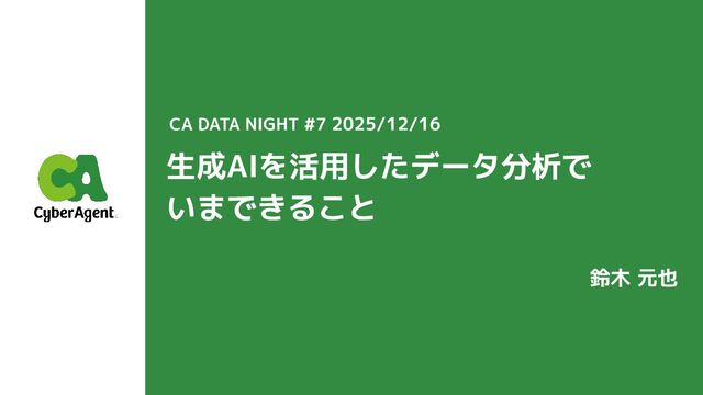 • 各ステップでユー ザー確認し、ずれを 早期修正 • 統一フォーマットで 進捗報告 • インストラクション を生成AIに作らせ る • 新卒指導の内容を評 価基準としチェック リスト化 • エージェントが チェックリストで自 己評価 • よくある問題と対処 方法をドキュメント 化 • テンプレートで出力 を標準化 • サブエージェントで コンテキスト分離 • draft / reviewで 段階的な品質向上 • 設計変更時は設計書 を自動更新 • エラー時は自動デ バッグ&ライブラリ 追加 • Notebook細分化で 試行錯誤を効率化 • 日本語文字化け対策 • ランダムシード固定 で再現性確保 • 可視化を多用して分 かりやすく • グラフを画像でエク スポートしてmdの レポートに埋め込む • 考察と次のアクショ ンを提案