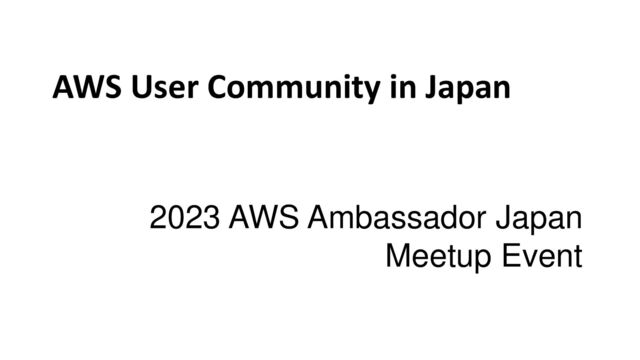 These slides are intended to show our AWS Ambassador friends from overseas how awesome the AWS user community in Japan is. I know I may not be the ideal person to speak about the community, but I will make a presentation on behalf of those who organize, contribute to, and participate in all Japan AWS User Group’s activities.