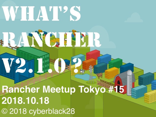 Evangelist Infrastructure Engineer Frontend Engineer Hobby1: Music,Live,FES !! Hobby2: Take a picture !! https://www.flickr.com/photos/cyberblack ISBN-10: 4798155373 ISBN-13: 978-4798155371 I wrote the Chapter 6 Rancher 2.0 part. Release on March 15, 2018 #rancherjp #kujiraya #deepcn