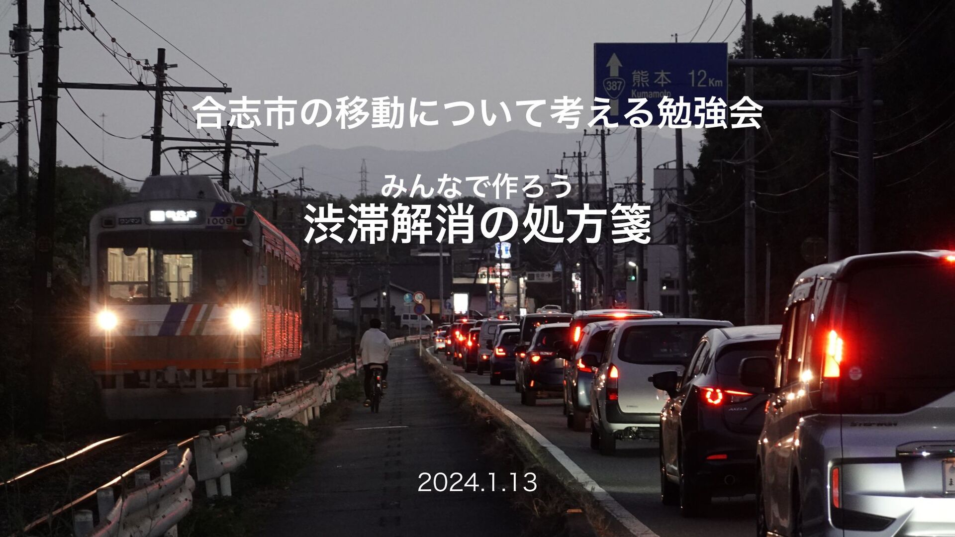 2024年1月13日にルーロ合志で行われた合志市の移動を考える勉強会「みんなで作ろう渋滞解消の処方箋」において、主催の斉場俊之がイントロダクションとして説明した資料です。