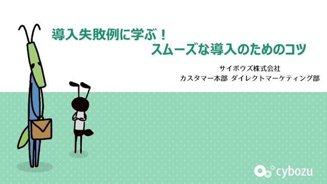 2018/9/11にサイボウズ株式会社 東京オフィスにて開催した「失敗しない!はじめてのワークフロー(サイボウズワークショップ)」にてご紹介した「導入失敗例に学ぶ!スムーズな導入のためのコツ」資料です。