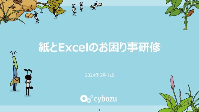 サイボウズで2024年に実施したビジネス系本部共同研修の資料です。 テーマは「紙文化とExcel」です。