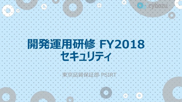 - 情報セキュリティ - サイボウズで検出している脆弱性とハンズオン - クロスサイト・スクリプティング(XSS) - SQLインジェクション(SQLi) - 情報漏えい - クロスサイトリクエストフォージェリ(CSRF) - HTTPのセキュリティ機能 - 脆弱性の見つけ方 - 脆弱性の評価 - 演習の説明