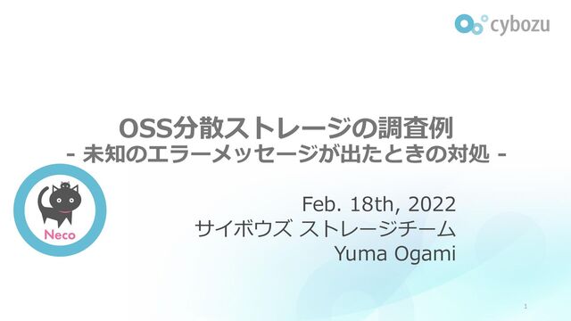 OSS分散ストレージの調査例 - 未知のエラーメッセージが出たときの対処 - Feb. 18th, 2022 サイボウズ ストレージチーム Yuma