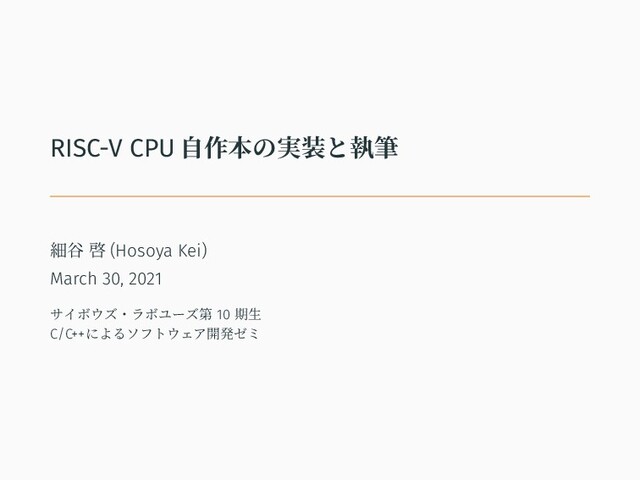RISC-V CPU 自作本の実装と執筆 細谷 啓 (Hosoya Kei) March 30, 2021