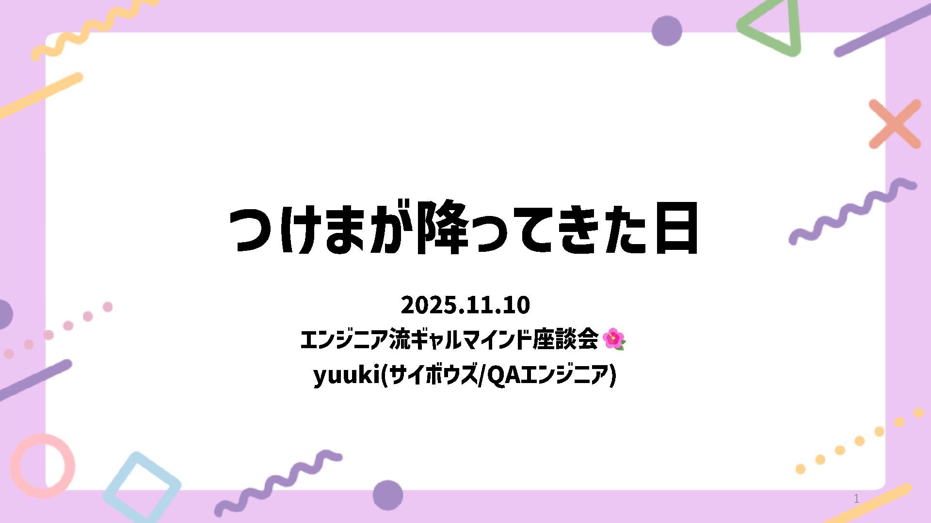 つけまが降ってきた日 2025.11.10 エンジニア流ギャルマインド座談会 yuuki (サイボウズ /QAエンジニア ) 1