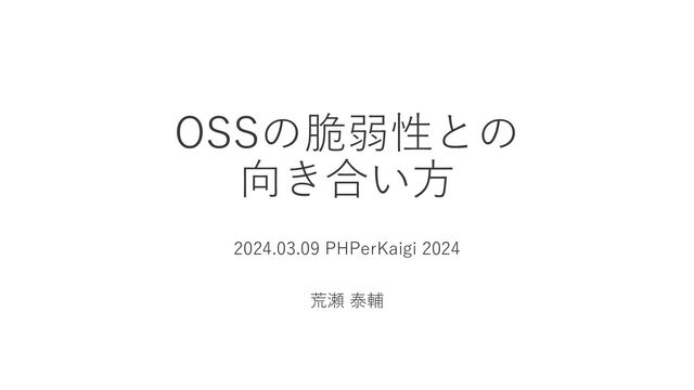 2024/03/09 16:55〜 Track A https://fortee.jp/phperkaigi-2024/proposal/ccdbcea0-f8a6-4114-b29b-93d14fc33572 OSSの脆弱性との向き合い方 by 荒瀬 泰輔