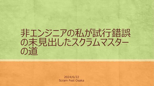 非エンジニアの私が試行錯誤の末見出したスクラムマスターの道 https://confengine.com/conferences/scrum-fest-osaka-2024/proposal/19904 Makiko Ohishi