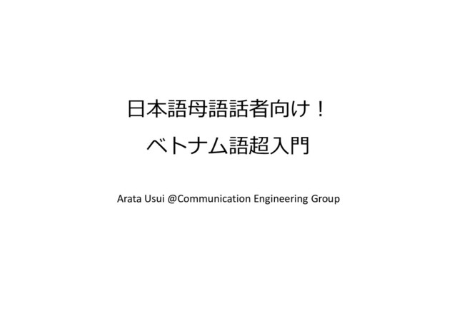 日本語母語話者向け! ベトナム語超入門 Arata Usui @Communication Engineering Group