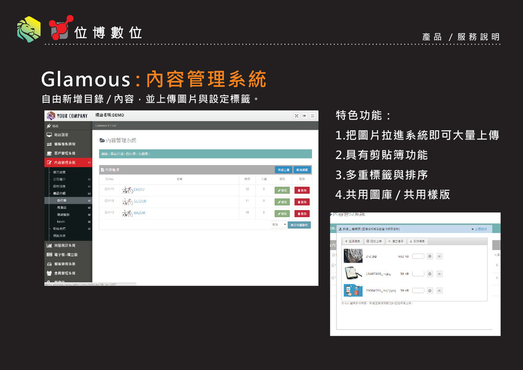 產 品 / 服 務 說 明 Glamous : 內容管理系統
