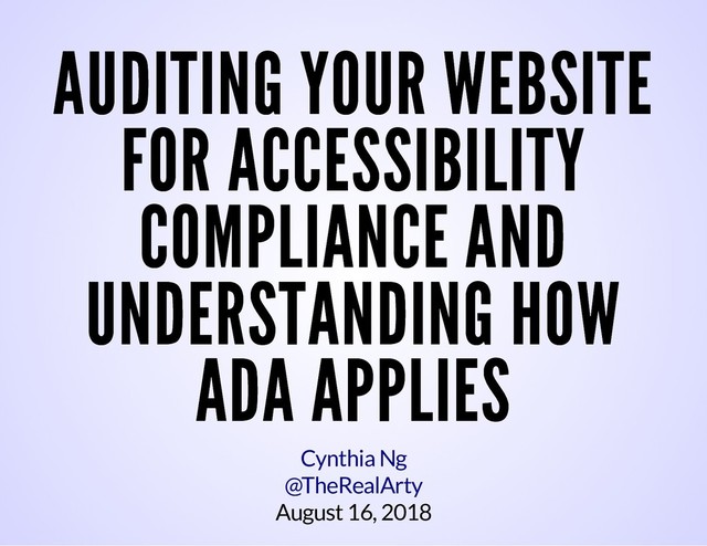 Websites need to be accessible so that anyone can use them including users who use assistive technology and even common technologies simply in ways we may not predict. Organizations concerned with compliance to the Americans with Disabilities Act (ADA) often do not know where to even begin. Join us to learn about Web Content Accessibility Guidelines (WCAG), what it has to do with ADA, and how to get an accessibility audit done using free resources and tools.