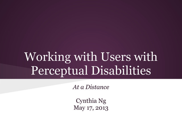 The goal of the presentation was to train library staff, who have various technical expertise no prior experience working with persons with disabilities, to provide assistance to users with "perceptual disabilities at a distance", that is virtually or remotely all in a maximum of 10 minutes.