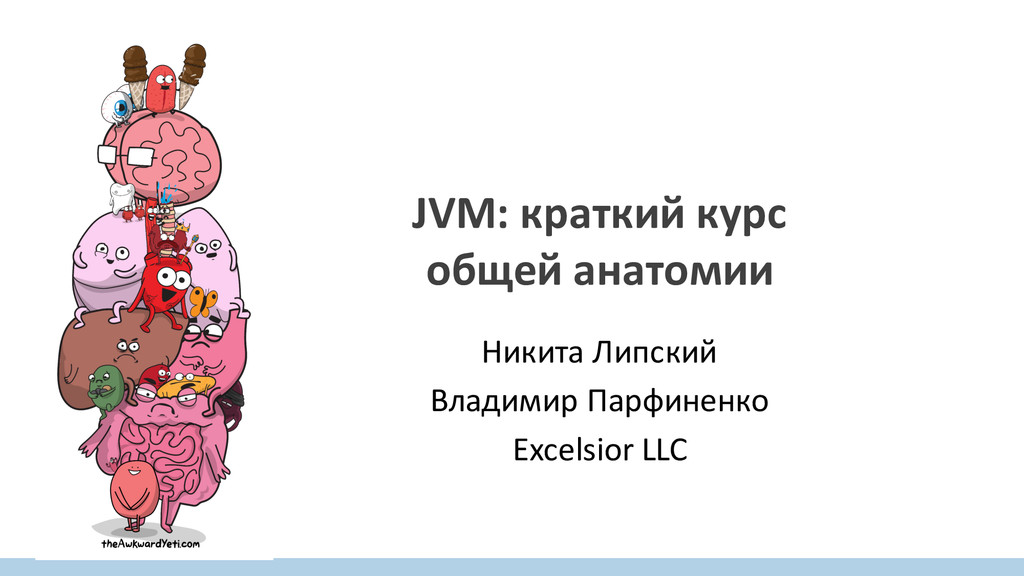 В этом докладе мы не будем лезть в кишки какой-то конкретной реализации JVM, как это любят делать на основном потоке Joker, однако я покажу где кишки у JVM находятся, а также где находятся и для чего служат печень, сердце, почки, мозг и другие органы.
