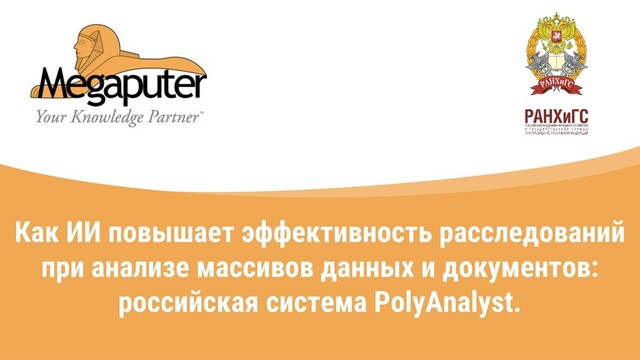 дежурных частей и анализ полученных данных АВТОМАТИЗИРОВАННАЯ КЛАССИФИКАЦИЯ- и маршрутизация входящих обращений граждан в форме электронного документа СТРУКТУРИРОВАНИЕ И УСТАНОВЛЕНИЕ СВЯЗЕЙ- В наборе разрозненной электронной документации f ПЛАТФОРМА POLYANALYST МЕГАПЬЮТЕР ИНТЕЛЛИДЖЕНС ВЫЯВЛЕНИЕ МОШЕННИЧЕСТВА- Определение типовых моделей поведения и анализ системных отклонений АНАЛИТИКА ИНТЕРНЕТ-РЕСУРСОВ- Изучение мнения граждан, определение наиболее важных тем для населения @ ИНТЕЛЛЕКТУАЛЬНЫЙ ПОИСК- Поиск среди всех информационных систем по контексту, паттернам и онтологиям