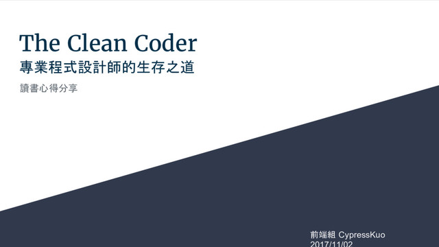 The Clean Coder 專業程式設計師的生存之道 前端組 CypressKuo 讀書心得分享