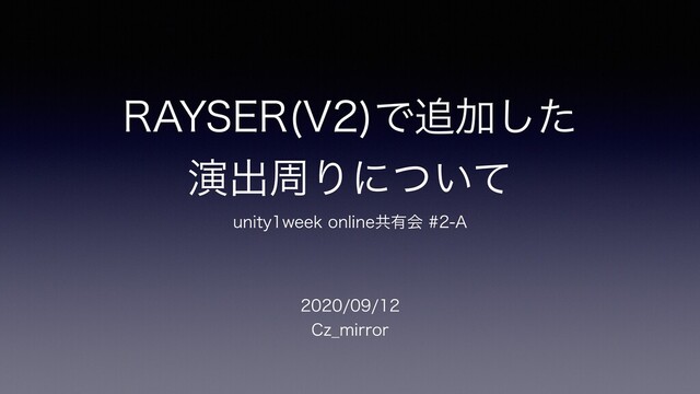 unity room 一週間ゲームジャム「ふえる」で投稿したRAYSER(V2)というゲームで導入した演出についてまとめたスライドになります。