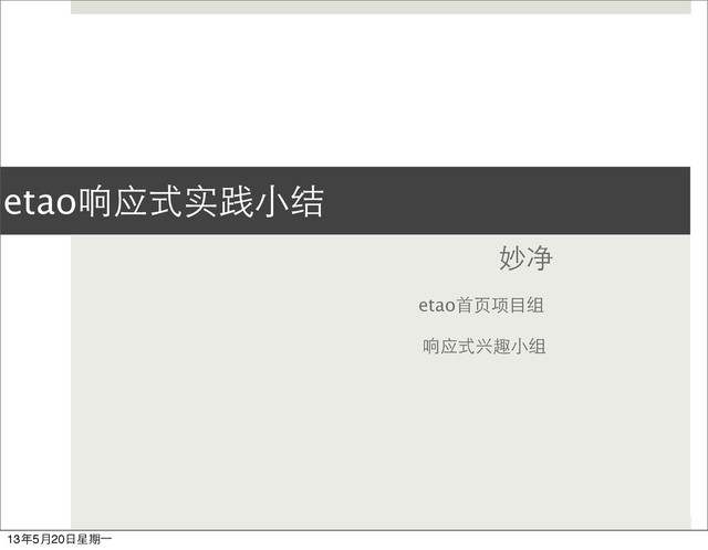 etao响应式实践⼩小结 妙净 etao⾸首⻚页项⺫⽬目组 响应式兴趣⼩小组 13年5月20⽇日星期⼀一