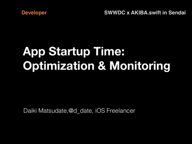 App Startup Time: Optimization & Monitoring Daiki Matsudate,@d_date, iOS Freelancer