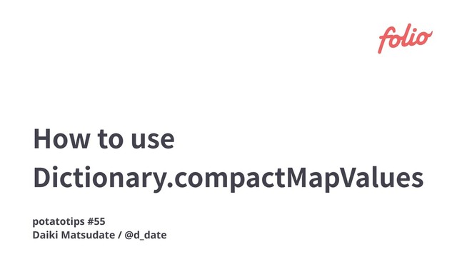 How to use Dictionary.compactMapValues potatotips #55 Daiki Matsudate / @d_date