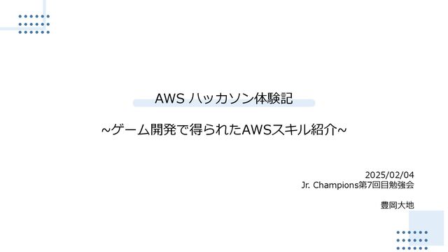/ AWS ハッカソン体験記 ~ゲーム開発で得られたAWSスキル紹介~ 2025/02/04 Jr. Champions第7回目勉強会 豊岡大地