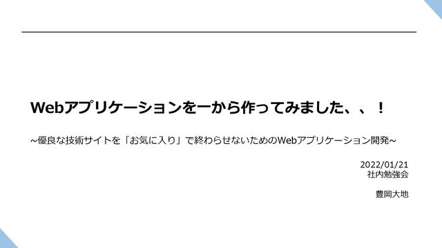 Webアプリケーションを一から作ってみました、、! ~優良な技術サイトを「お気に入り」で終わらせないためのWebアプリケーション開発~ 2022/01/21 社内勉強会 豊岡大地