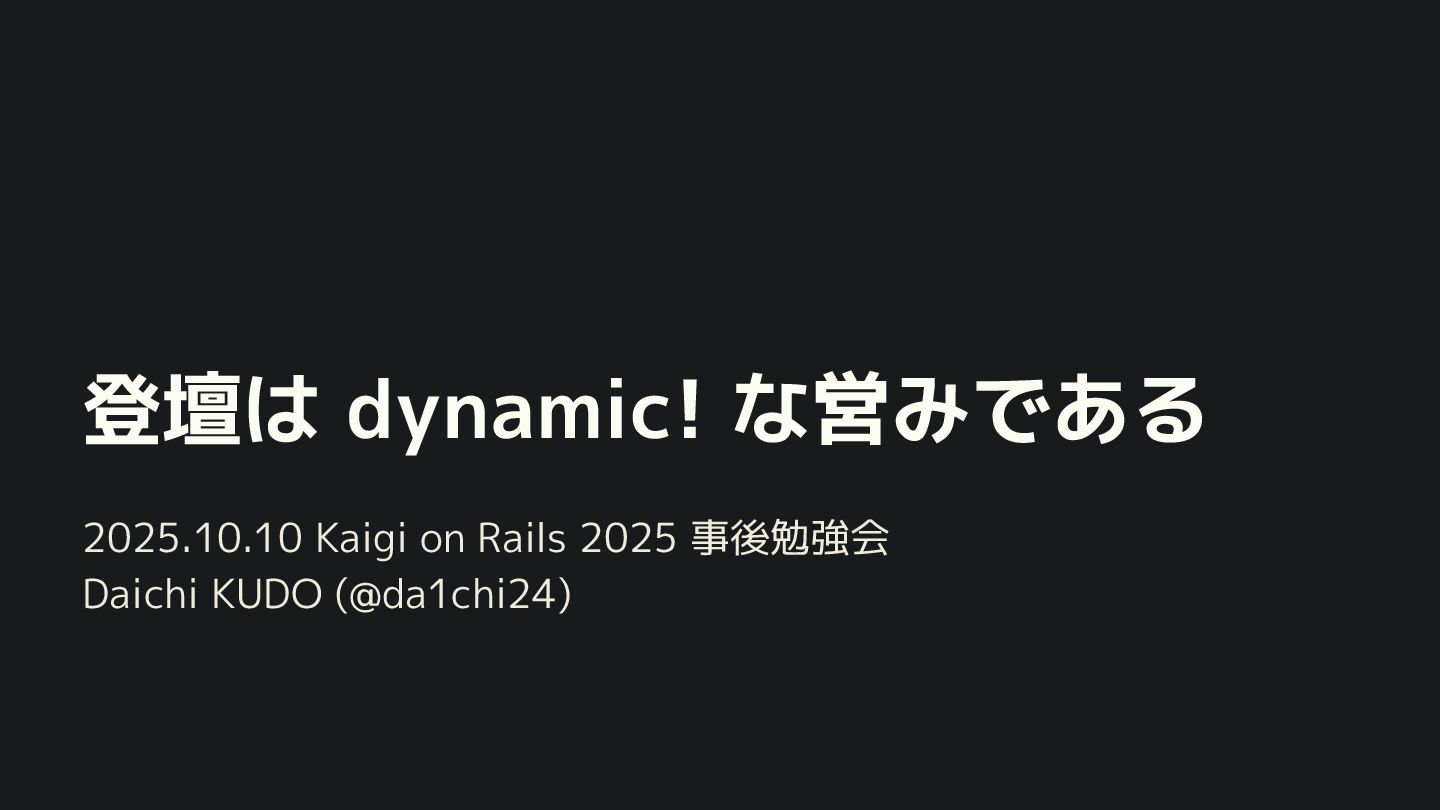 登壇は dynamic! な営みである 2025.10.10 Kaigi on Rails 2025 事後勉強会 Daichi