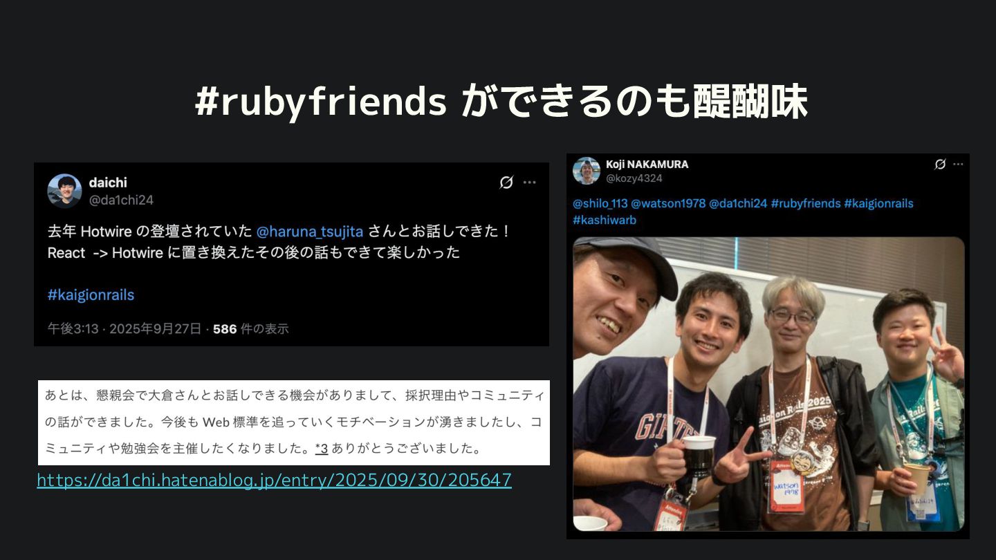 #rubyfriends ができるのも醍醐味 https://da1chi.hatenablog.jp/entry/2025/09/30/205647