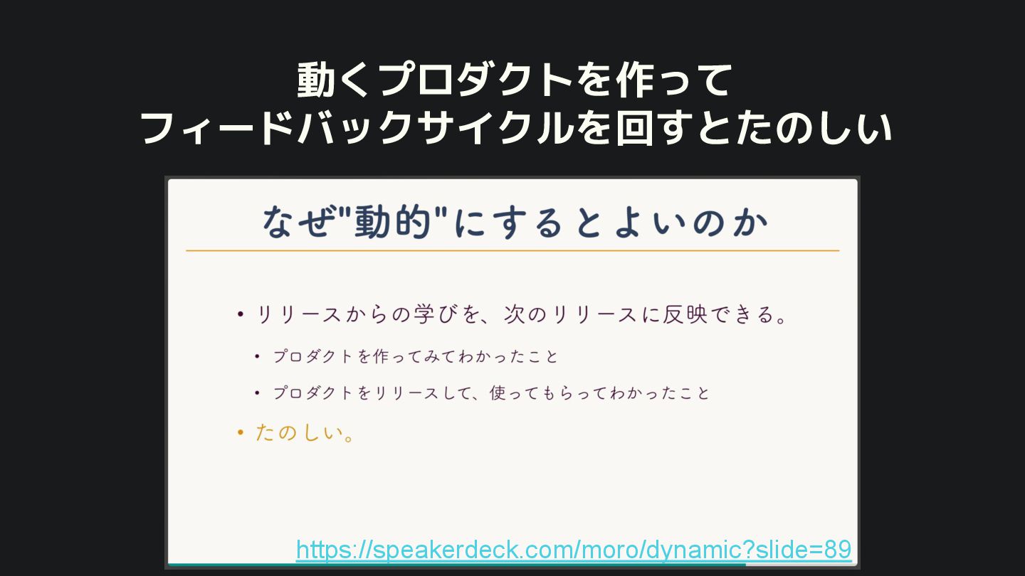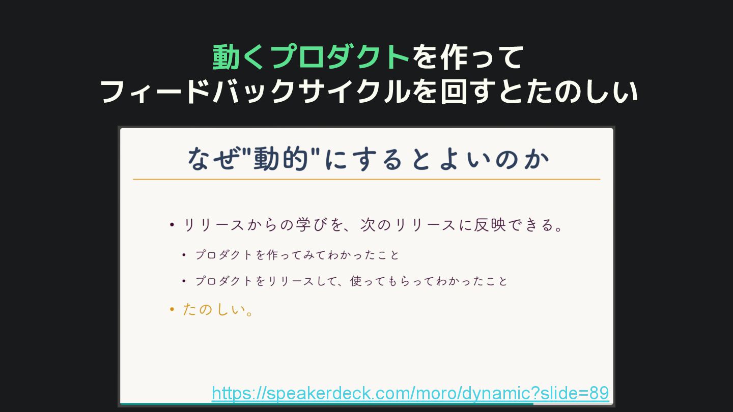 動くプロダクトを作って フィードバックサイクルを回すとたのしい https://speakerdeck.com/moro/dynamic?slide=89