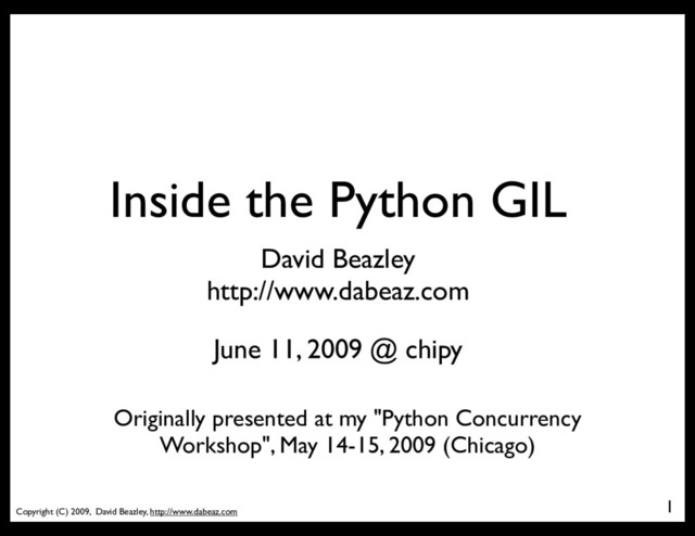 as I can tell, the Python GIL implementation has not changed much (if at all) in the last 10 years • The GIL code in Python 1.5.2 looks almost identical to the code in Python 3.0 • I don't know whether it's even been studied all that much (especially on multicore) • There is more interest in removing the GIL than simply changing the GIL 42