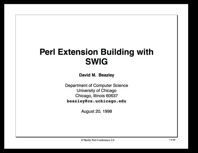 Conference presentation. O'Reilly Perl Conference 2.0, 1998. San Jose.