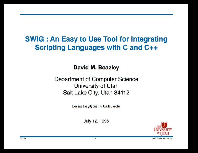 SWIG: An Easy to Use Tool for Integrating Scripting Languages with C and C++