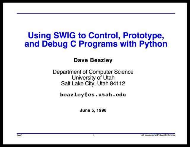 Conference presentation at 4th International Python Conference. Livermore, CA. June 5, 1996.