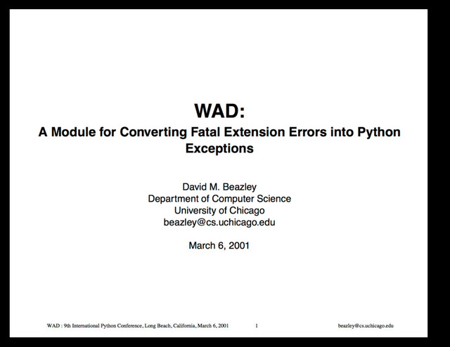 Conference presentation. 9th International Python Conference, 2001. Long Beach.