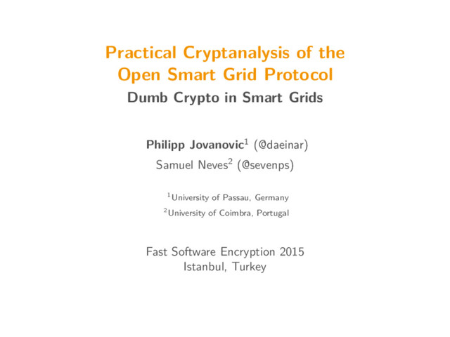 . . . . i = 0 i = 1 k5 k5 k4 k4 k3 k3 m136 , . . . , m143 m136 , . . . , m143 m128 , . . . , m135 m128 , . . . , m135 m120 , . . . , m127 m120 , . . . , m127 OMABackward OMAForward For i = 0, . . . , 11, set r = 8i + 16, guess k17−i mod 12 , and fix k16−i mod 12 = 00 (note: key byte has no effect on processing of m). Compute: b = OMAForward(OMABackward(a, m, k, r), m , k, r). Check: b = a . If so, guess for k17−i mod 12 is saved as a candidate. 23