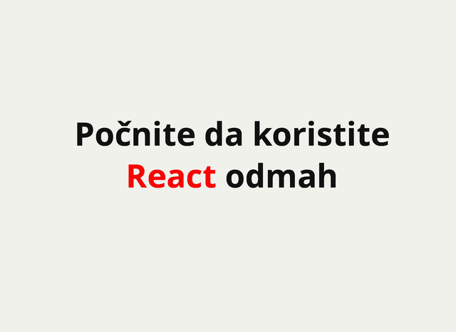 React je biblioteka za pravljenje korisničkih interfejsa napravljena od strane Facebook-a. Možemo o njoj da mislimo kao o "V" (view) u MVC arhitekturi. React se koristi za pravljenje i ažuriranje kompleksnih korisničkih interfejsa i namena mu je da se koristi pored drugih popularnih biblioteka (npr. Backbone.js). U ovom predavanju ćete videti kako možete da probate da koristite React u vašim postojećim aplikacijama i sami vidite da li je React za vas ili ne.