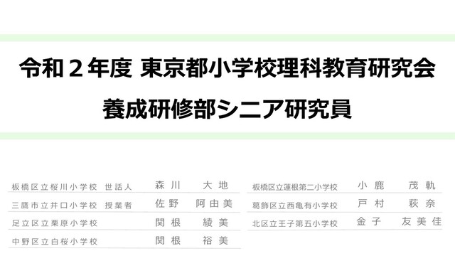 令和2年度 東京都小学校理科教育研究会 養成研修部シニア研究員 発表資料