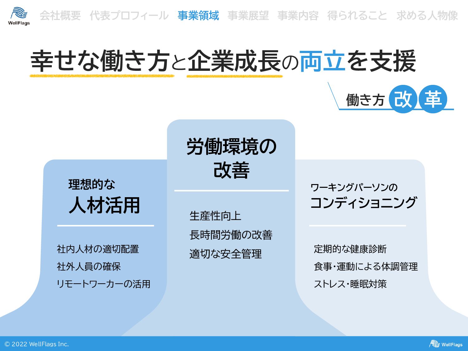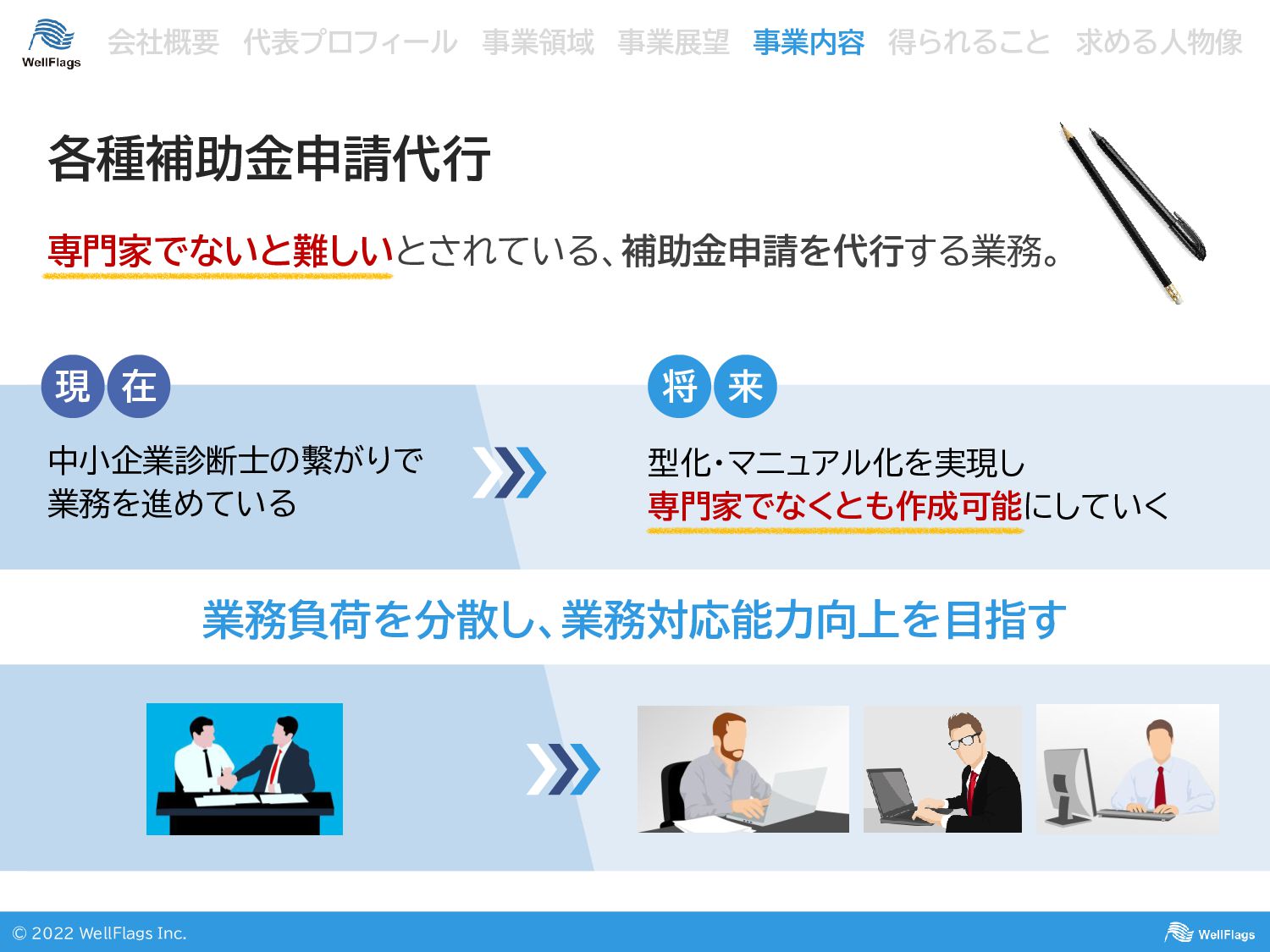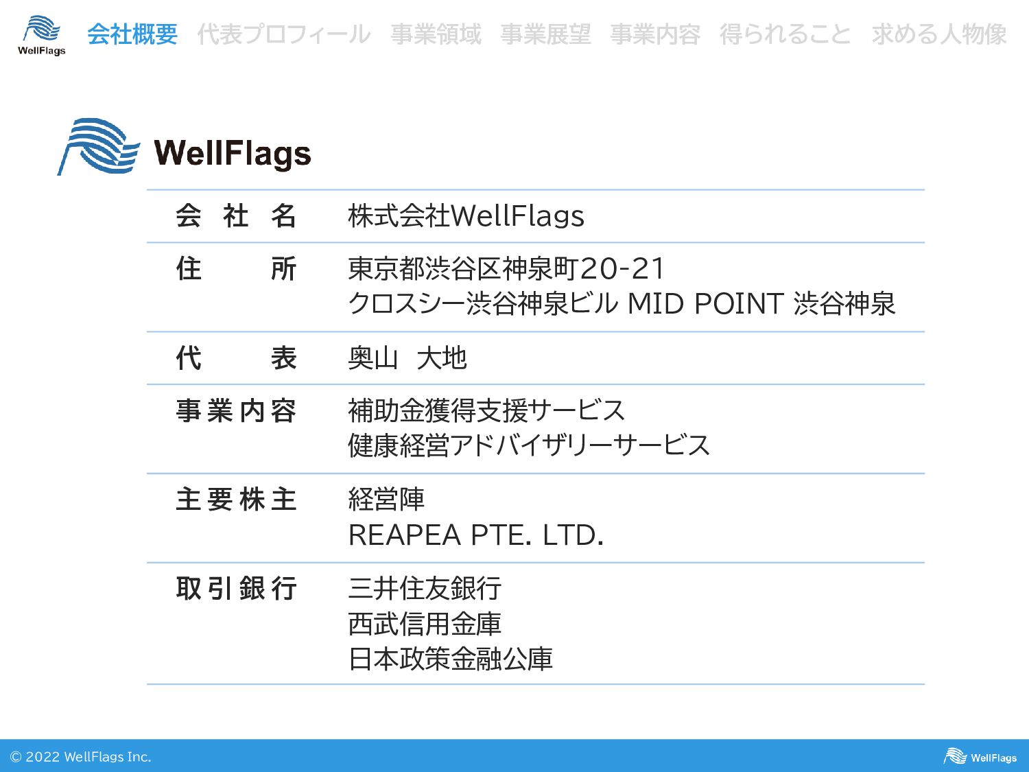 勤 務 日 数 勤 務 時 間 その他__ MID POINT神泉渋谷 (神泉駅 徒歩3分) 週2日以上 (多いほど有難いです) 基本9時~17時 (休憩1時間) コンディションUPのため、就業中の昼寝・運動OKです (ただし給料対象外) 昼寝:30分まで / 運動:60分まで 会社概要 代表プロフィール 事業領域 事業内容 得られること 求める人物像 会社経営全般について興味がある 事業構築の経験をしたい 簿記や執筆スキルに自信がある/ スキルを向上させたい 中小企業診断士の仕事に興味がある リモートワーク可能 事業展望