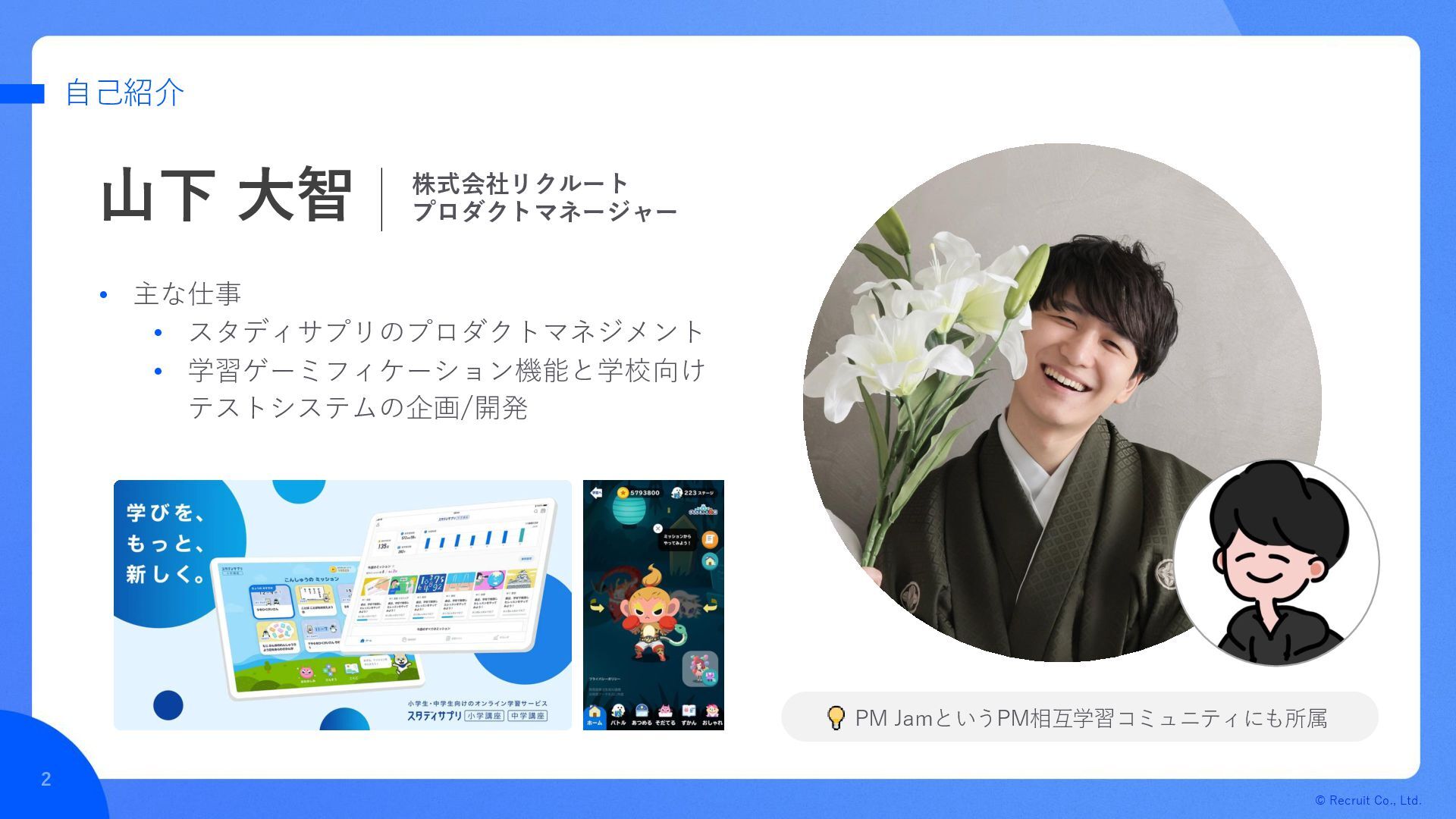 1. © Recruit Co., Ltd. 自己紹介 PM JamというPM相互学習コミュニティにも所属 • 主な仕事 •
