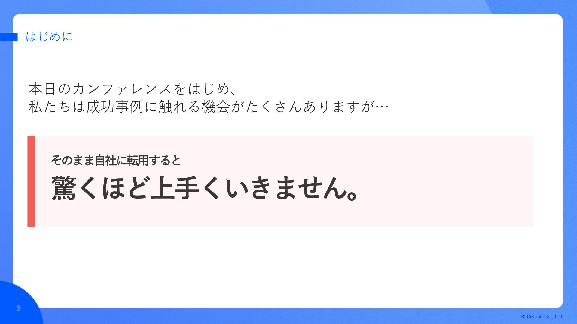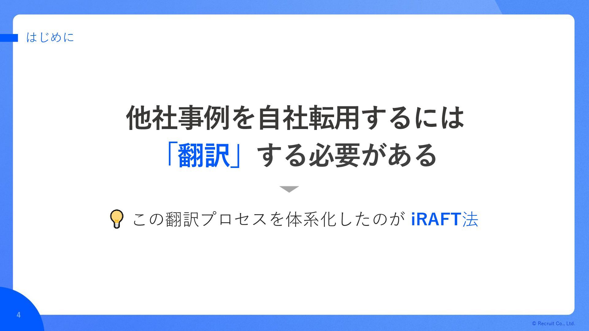 3. © Recruit Co., Ltd. 8 顧客心理を理解し、 自社が達成したい成果と向き合う 他社施策の「成功原理」を抽象化し、 HOWから本質を取り出す i