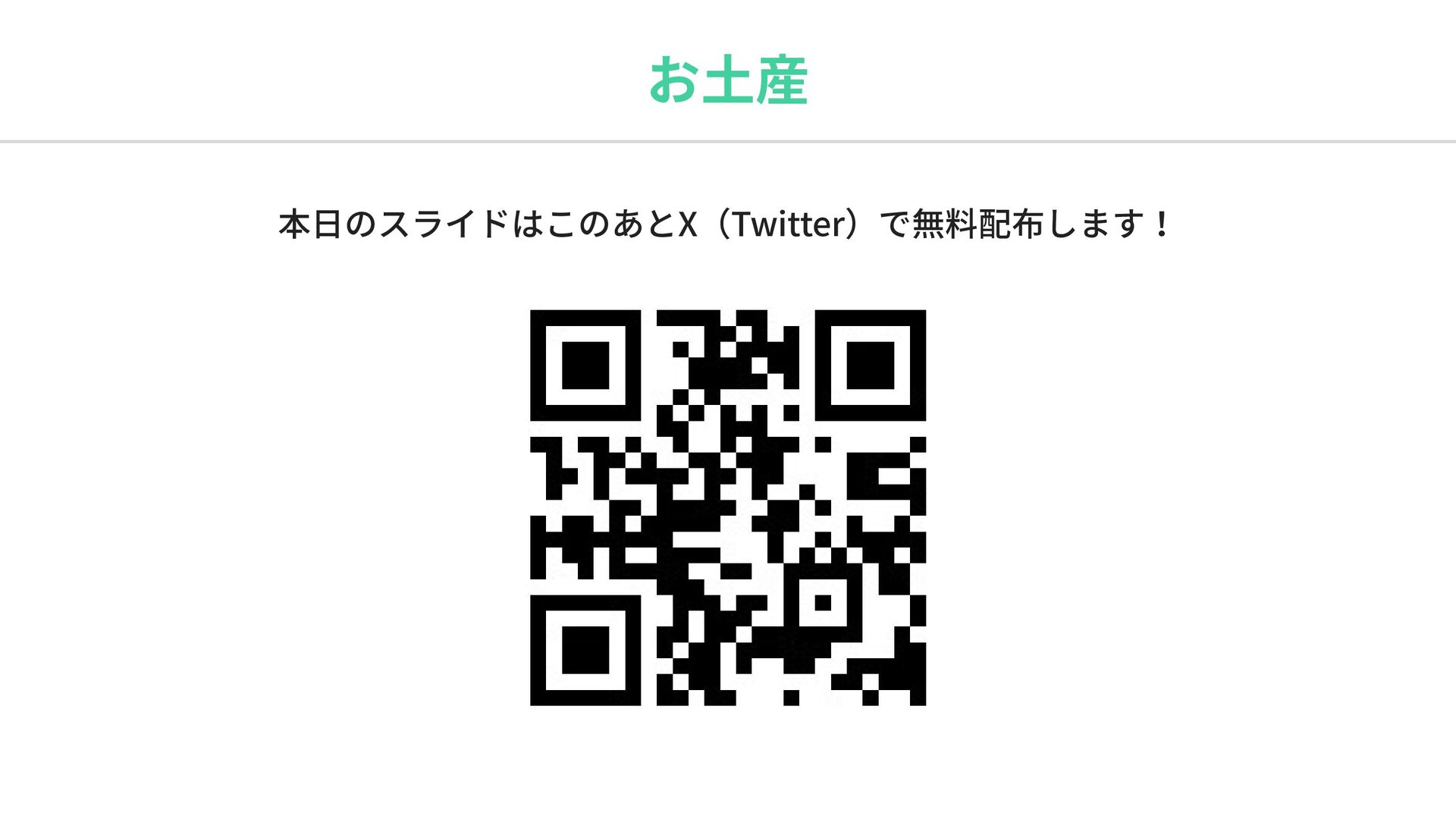 本日のスライドはこのあとX(Twitter)で無料配布します! お土産