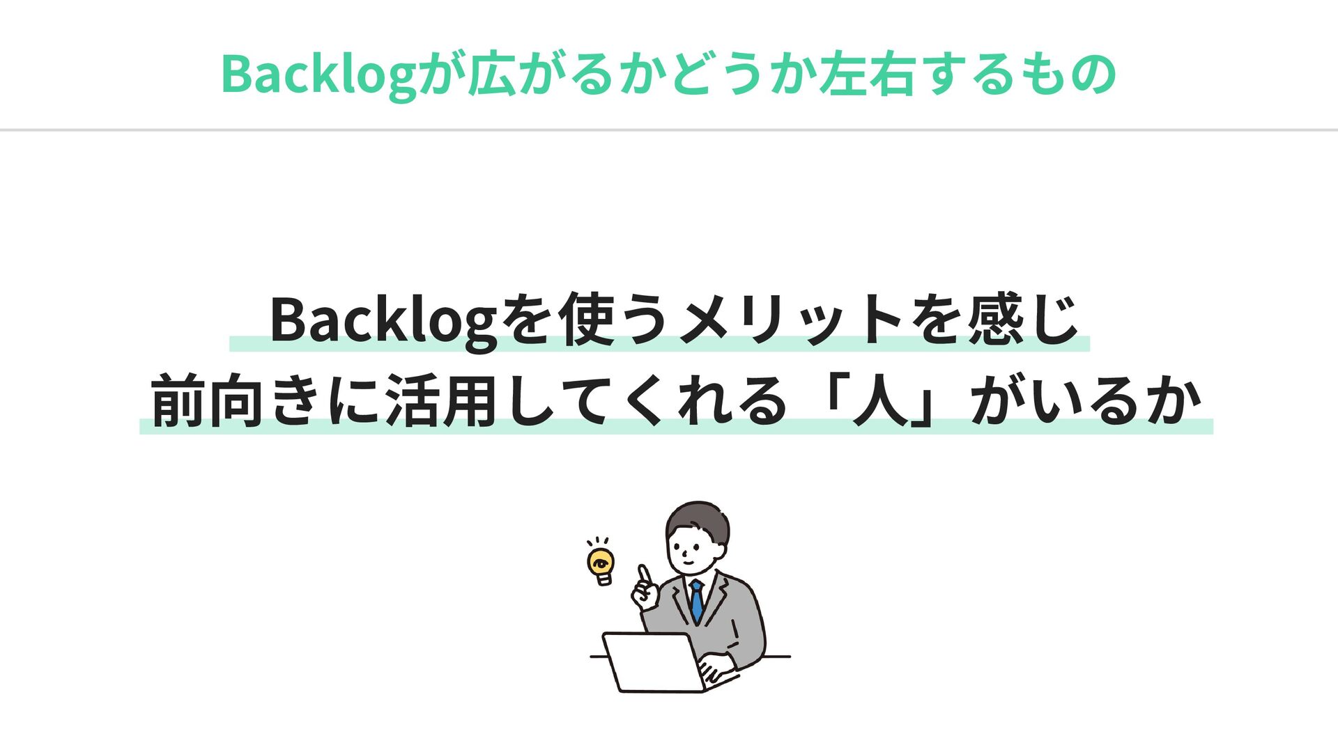 Backlogが広がるかどうか左右するもの Backlogを使うメリットを感じ 前向きに活用してくれる「人」がいるか