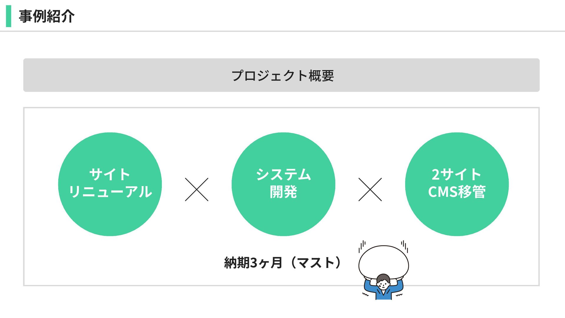 事例紹介 納期3ヶ月(マスト) プロジェクト概要 サイト リニューアル システム 開発 2サイト CMS移管