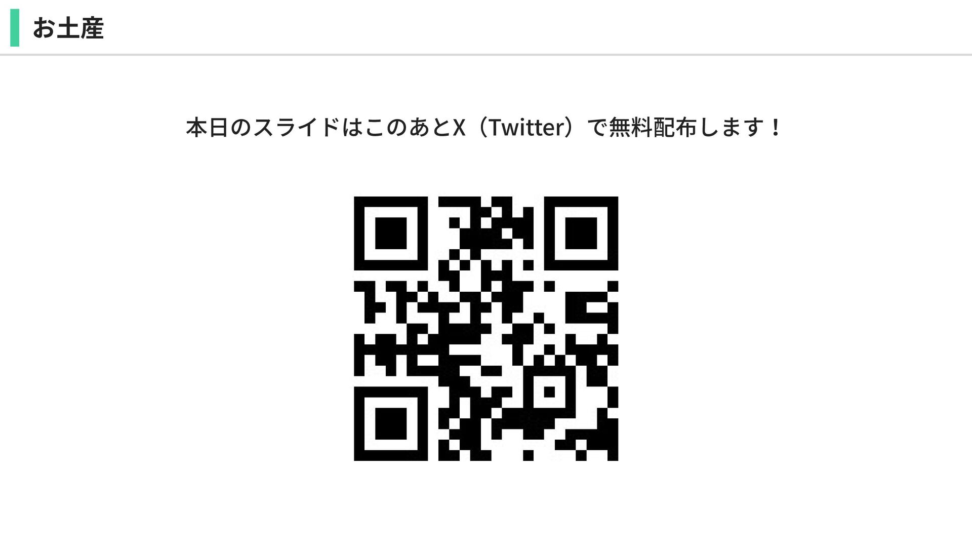 お土産 本日のスライドはこのあとX(Twitter)で無料配布します!