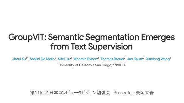 CVPR2022論文読み会で使用した「GroupViT: Semantic Segmentation Emerges from Text Supervision. (Xu et. al.)」のスライド