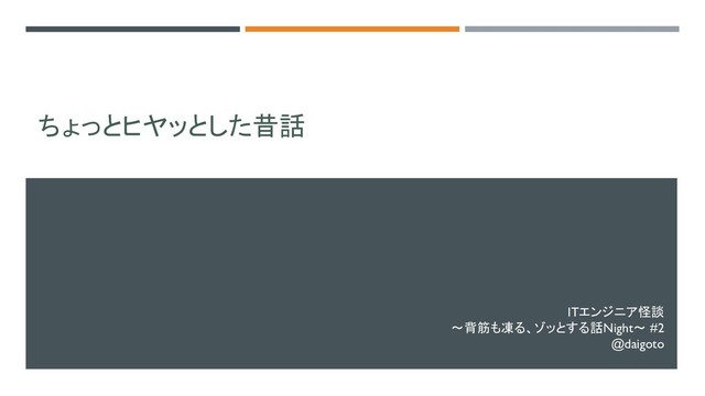 ちょっとヒヤッとした昔話 ITエンジニア怪談 ~背筋も凍る、ゾッとする話Night~ #2 @daigoto