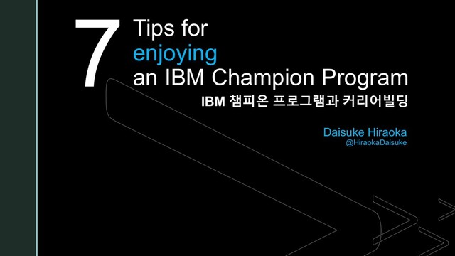 IBM 챔피언 프로그램을 즐기는 7가지 방법 -IBM 챔피온 프로그램과 커리어빌딩-이라는 제목으로 제가 발표한 자료입니다.