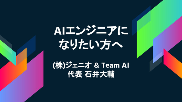 AIエンジニアに なりたい方へ (株)ジェニオ & Team AI 代表 石井大輔