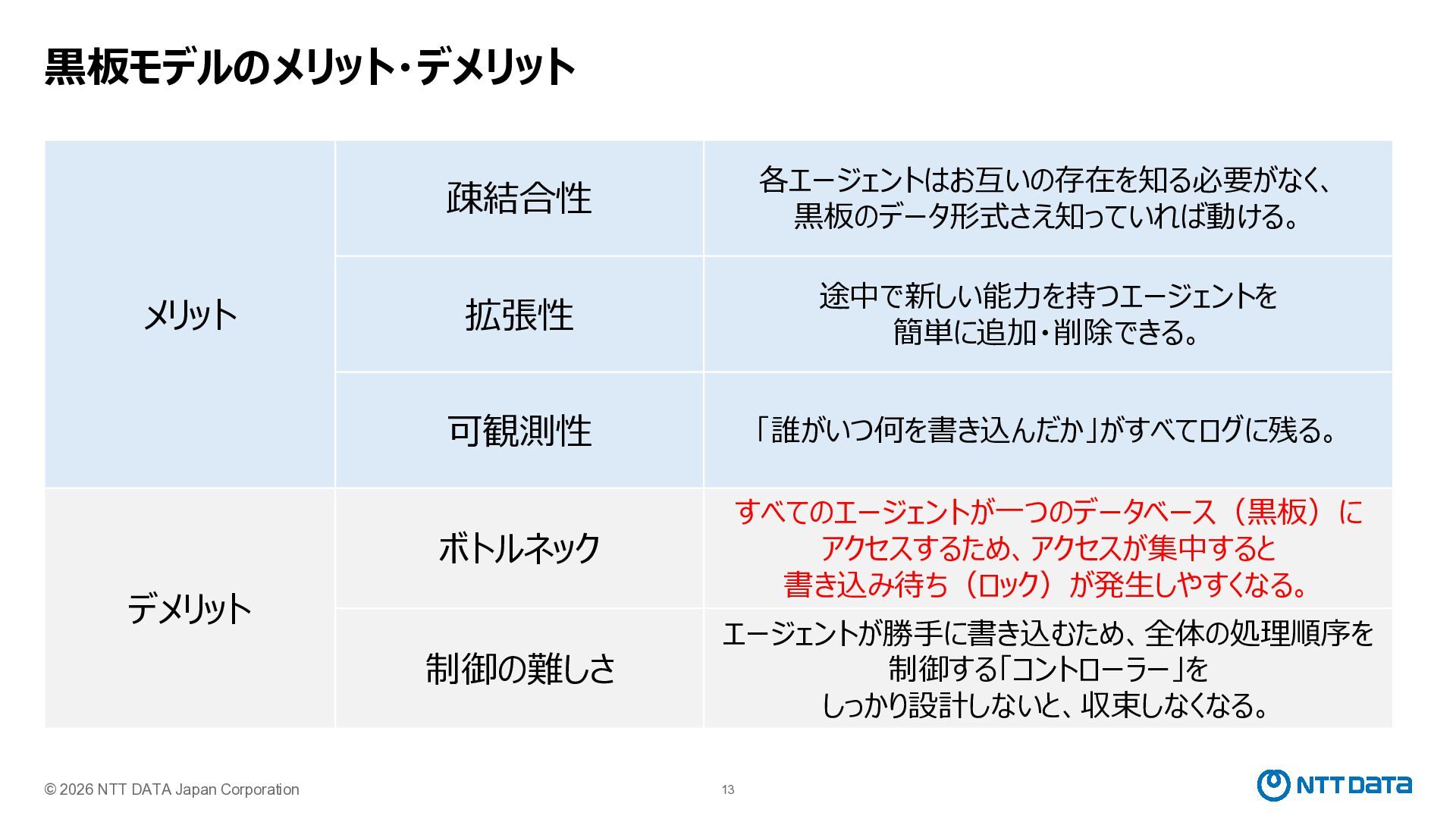 6. © 2026 NTT DATA Japan Corporation 13 黒板モデルのメリット・デメリット メリット 疎結合性