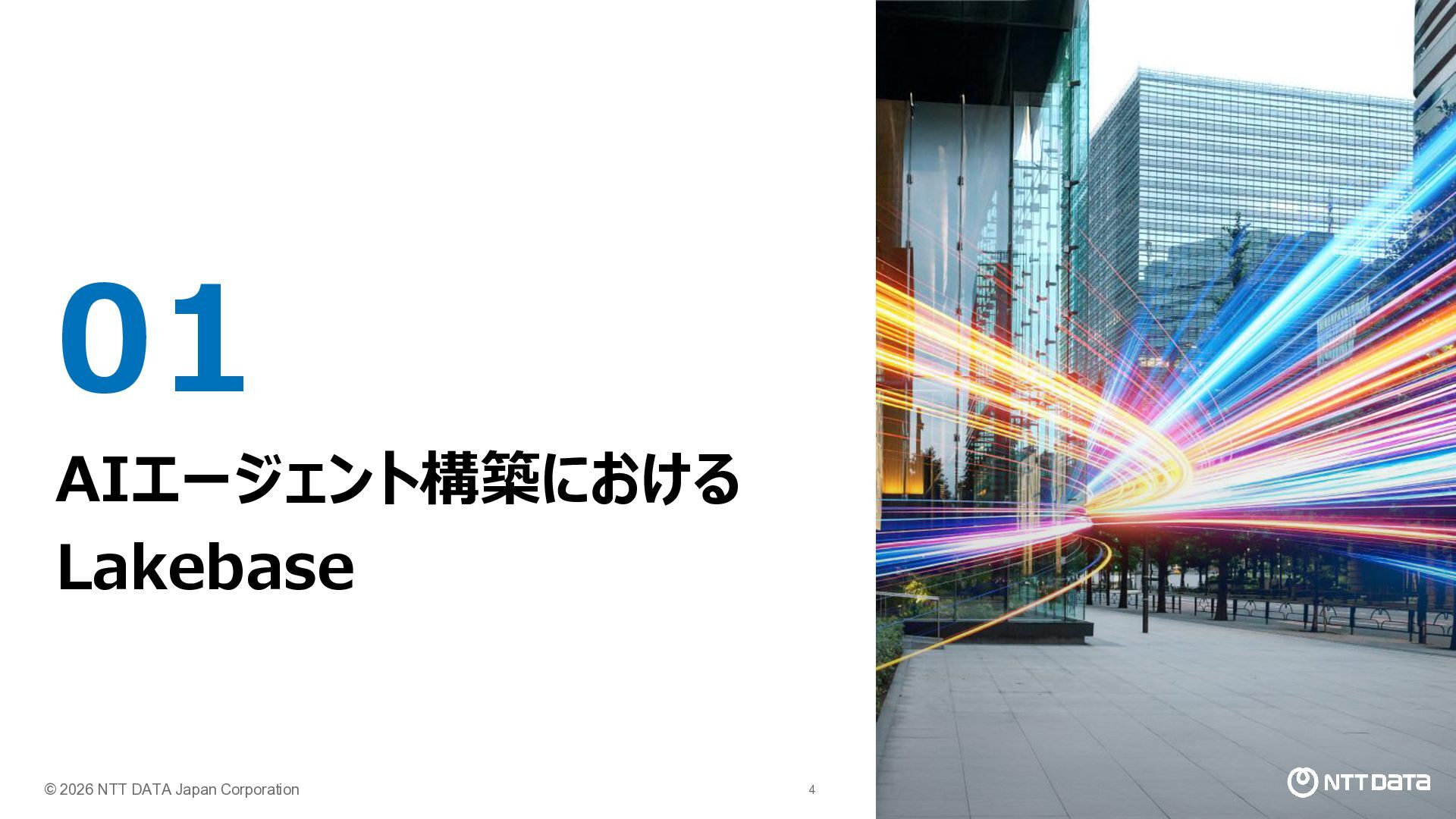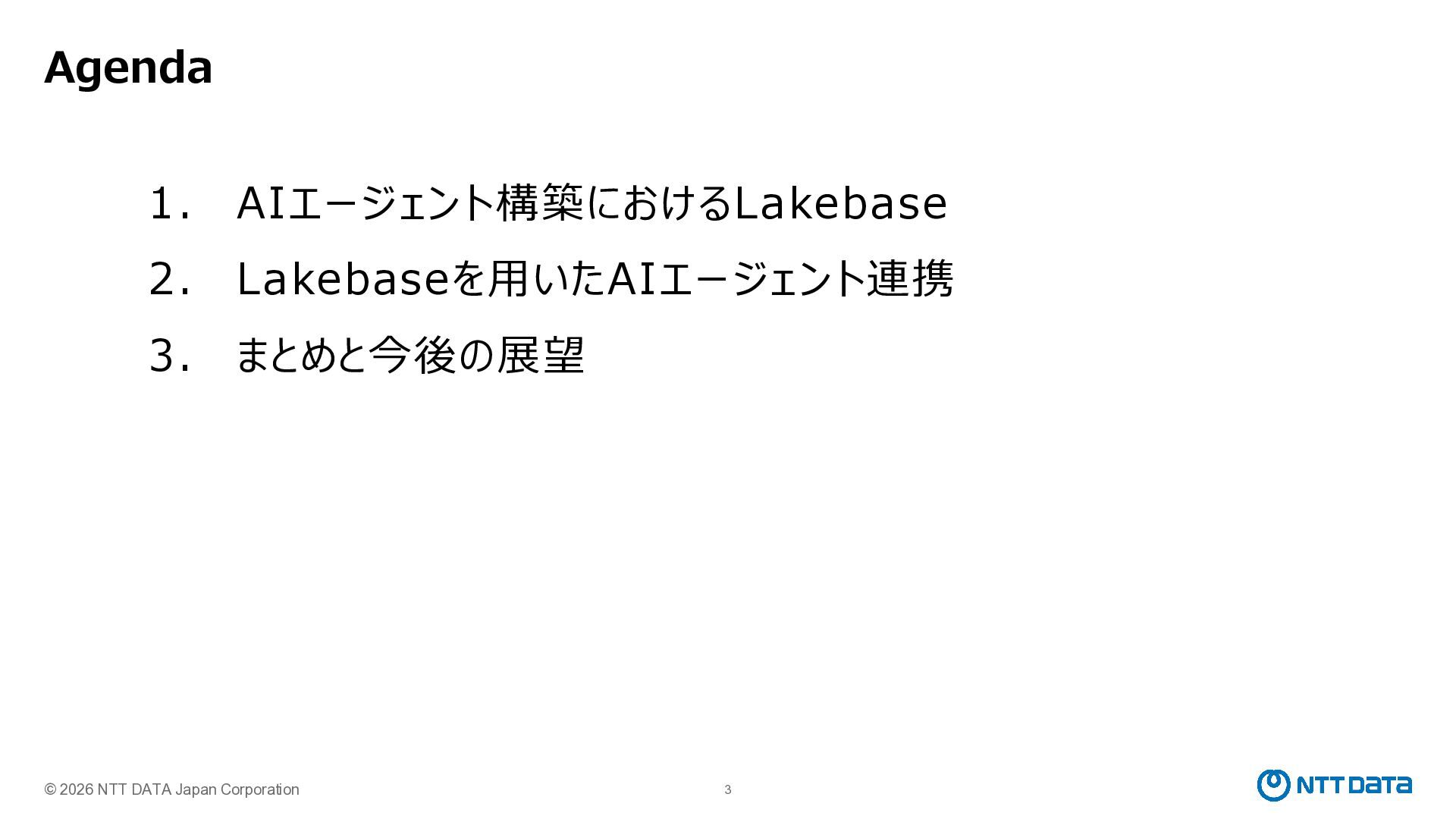 3. © 2026 NTT DATA Japan Corporation 3 1. AIエージェント構築におけるLakebase 2.